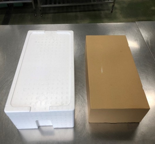 強度および保温性を維持したまま、外箱を発泡スチロール箱から段ボール箱に変更