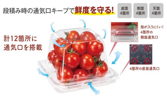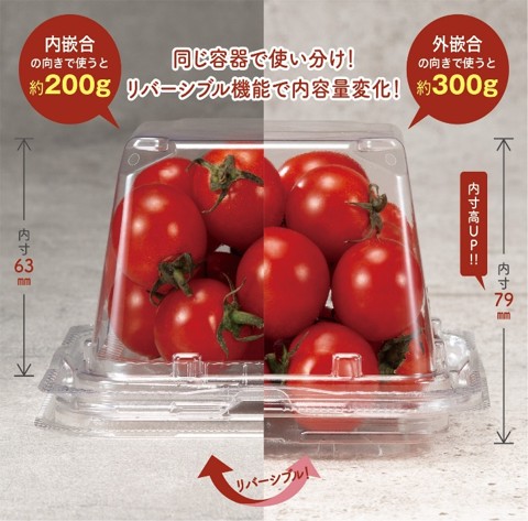 季節変動による青果物のサイズや市場価格の変動に対し同一の容器で包装が可能
